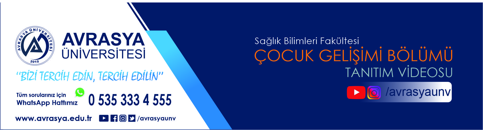 Çocuk Gelişimi Bölümü: 2010 yılında açılan Avrasya Üniversitesi Sağlık Bilimleri Fakültesi’nin en önemli bölümlerinden biri olarak faaliyete başlamıştır. Faaliyete başladığı yıldan beri hep ilgi duyulan bir bölüm olma özelliğini korumuştur. 2022-2023 eğitim öğretim yılında da %100 doluluk oranına ulaşmıştır. Yatay ve dikey geçişlerde de bölümümüz mutluluk verici düzeyde ilgi odağı olmaya devam etmektedir.